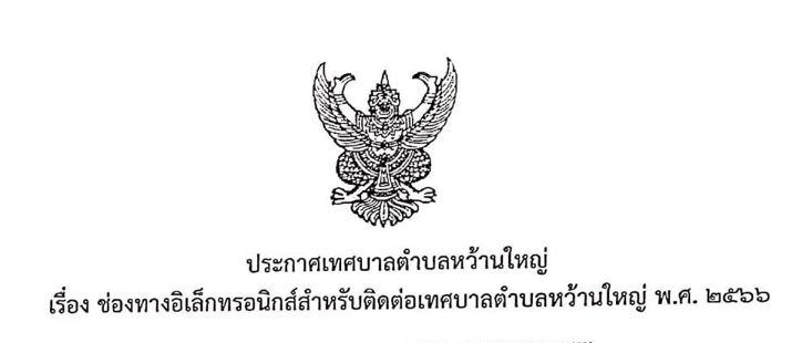 ช่องทางอิเล็กทรอนิกส์ สำหรับติดต่อเทศบาลตำบลหว้านใหญ่ พ.ศ. 2566