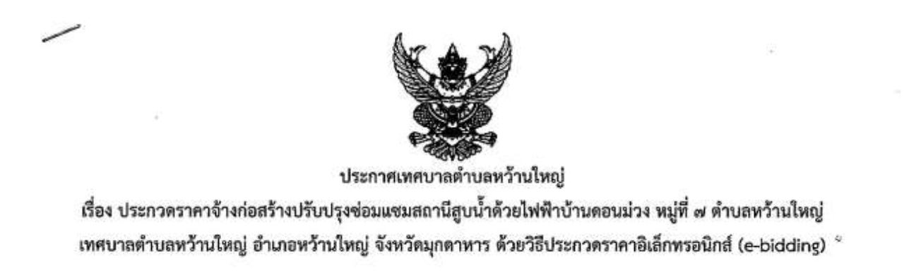 ประกาศประกวดราคาปรับปรุงซ่อมแซมสถานีสูบน้ำด้วยไฟฟ้าบ้านดอนม่วง หมู่ที่ 7