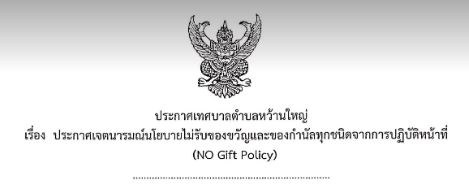 ประกาศเจตนารมณ์นโยบายไม่รับของขวัญและของกำนัลทุกชนิดจากการปฏิบัติหน้าที่(No Gift Policy)