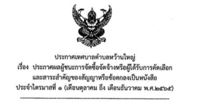 ประกาศผู้ชนะการจัดซื้อจัดจ้างหรือผู้ได้รับการคัดเลือกและสาระสำคัญของสัญญาหรือข้อตกลงเป็นหนังสือ ประจำไตรมาส 1