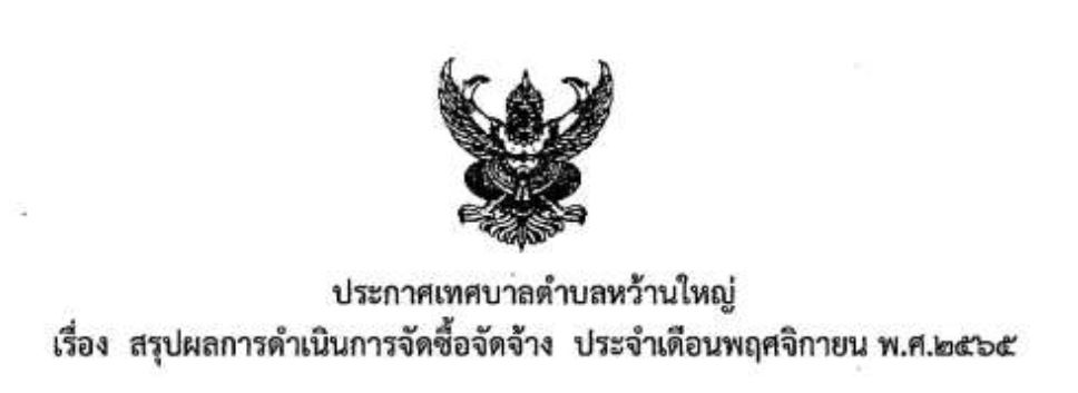 สรุปผลการดำเนินการจัดซื้อจัดจ้าง ประจำเดือนพฤศจิกายน 2565