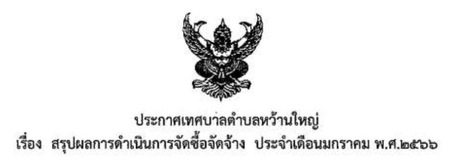 สรุปผลการดำเนินการจัดซื้อจัดจ้าง ประจำเดือนมกราคม 2566
