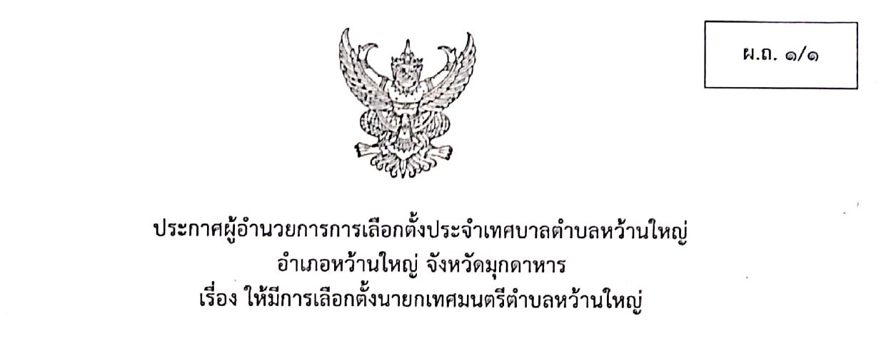 ประกาศผู้อำนวยการการเลือกตั้งประจำเทศบาลตำบลหว้านใหญ่
