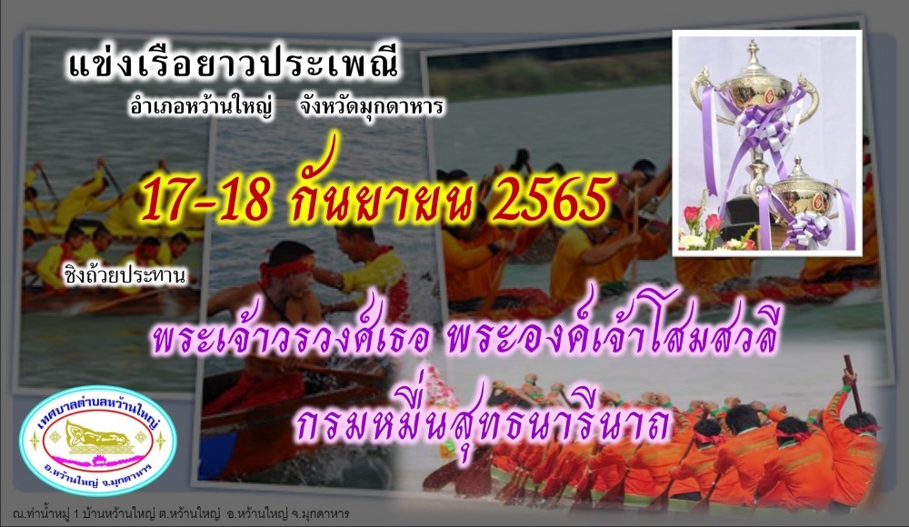 กำหนดการโครงการแข่งขันเรือยาวประเพณีอำเภอหว้านใหญ่จังหวัดมุกดาหาร ประจำปี ๒๕๖๕